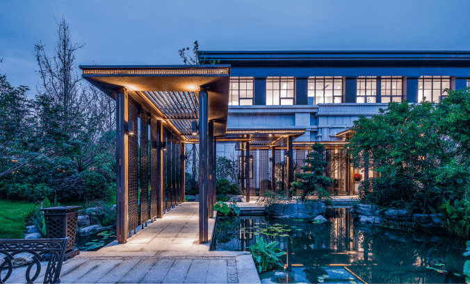 取《兰亭集序》园林意境,完美融合东方美学和现代建筑手法,赋予项目深厚的文化气质。